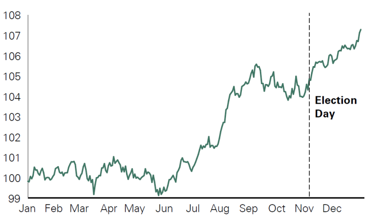 Despite the uncertainty that elections bring, history demonstrates that maintaining a long-term investment approach has been additive for client portfolios. We maintain our focus on investing in high-quality companies and note that, at times, election volatility can create dislocation and, therefore, attractive entry points for companies. We encourage clients to remain invested and overlook short-term election-related volatility. We have numerous communications lined up around the election, including this recently published elections Q&A, and we encourage you to contact your advisor should you have any questions.