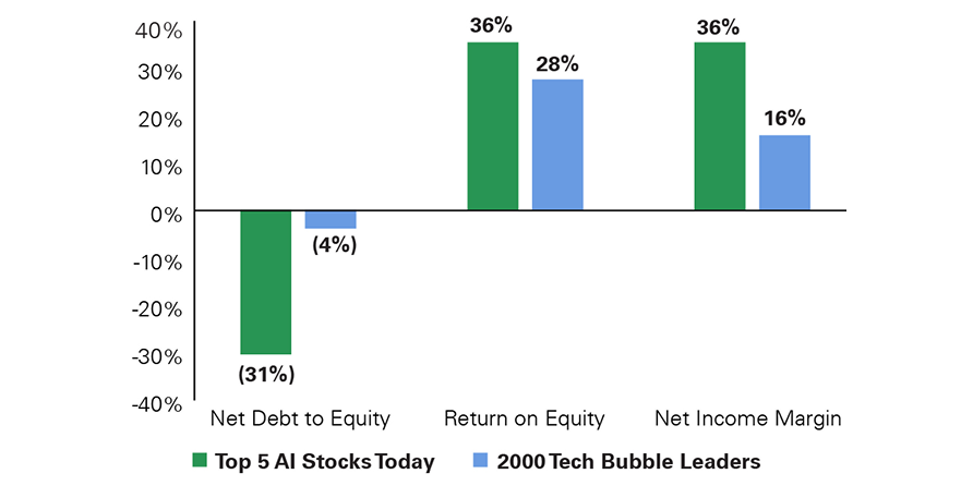 Exhibit 3: Fundamentals of Today’s AI Leaders vs. Tech Bubble